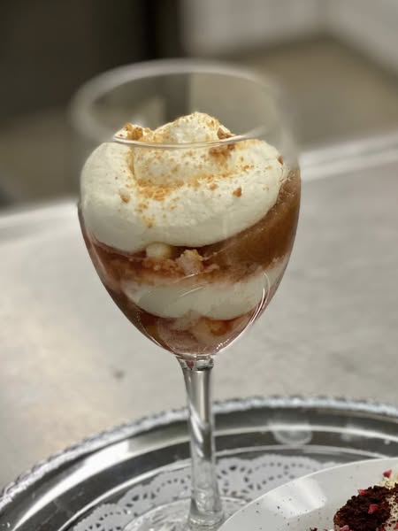 * Gentag evt. lagene og afslut med flødeskum og lidt pynt – fx ristede mandelflager, friske bær eller et mynteblad