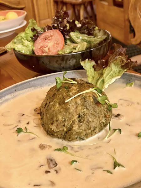 Det er jo ubeskriveligt vanvittigt mærkeligt at man kan lægge gammelt brød i blød og få det til at smage så vidunderligt – Spinat-Käseknödel.